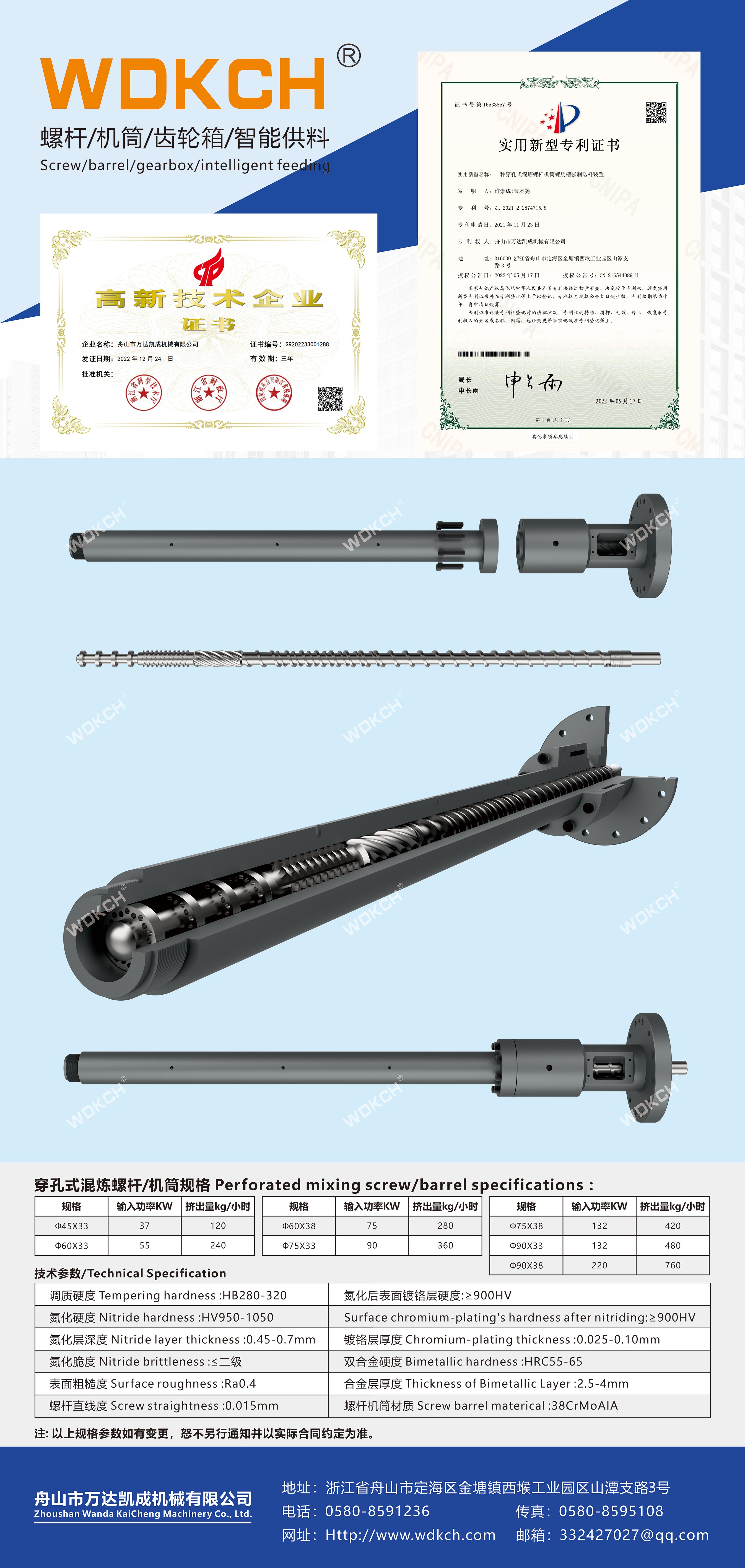 舟山市萬達凱成機械有限公司專業(yè)制造機筒、螺桿、平行雙機筒螺桿、錐雙機筒螺桿、哥林柱、鋼司、齒輪減速箱、簡易塑料成型機械。