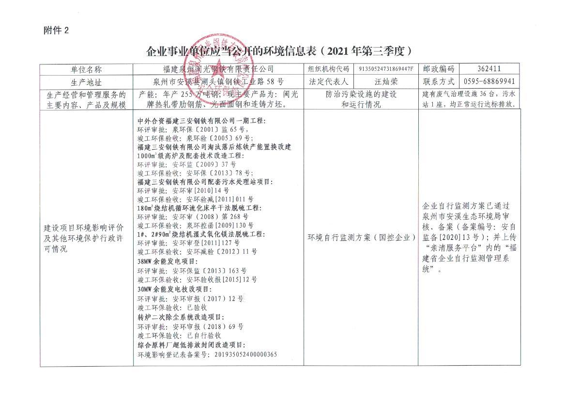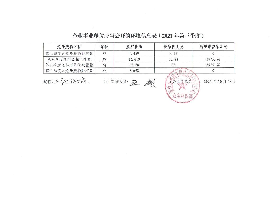 企業(yè)事業(yè)單位應當公開的環(huán)境信息表(2021年度第三季度)