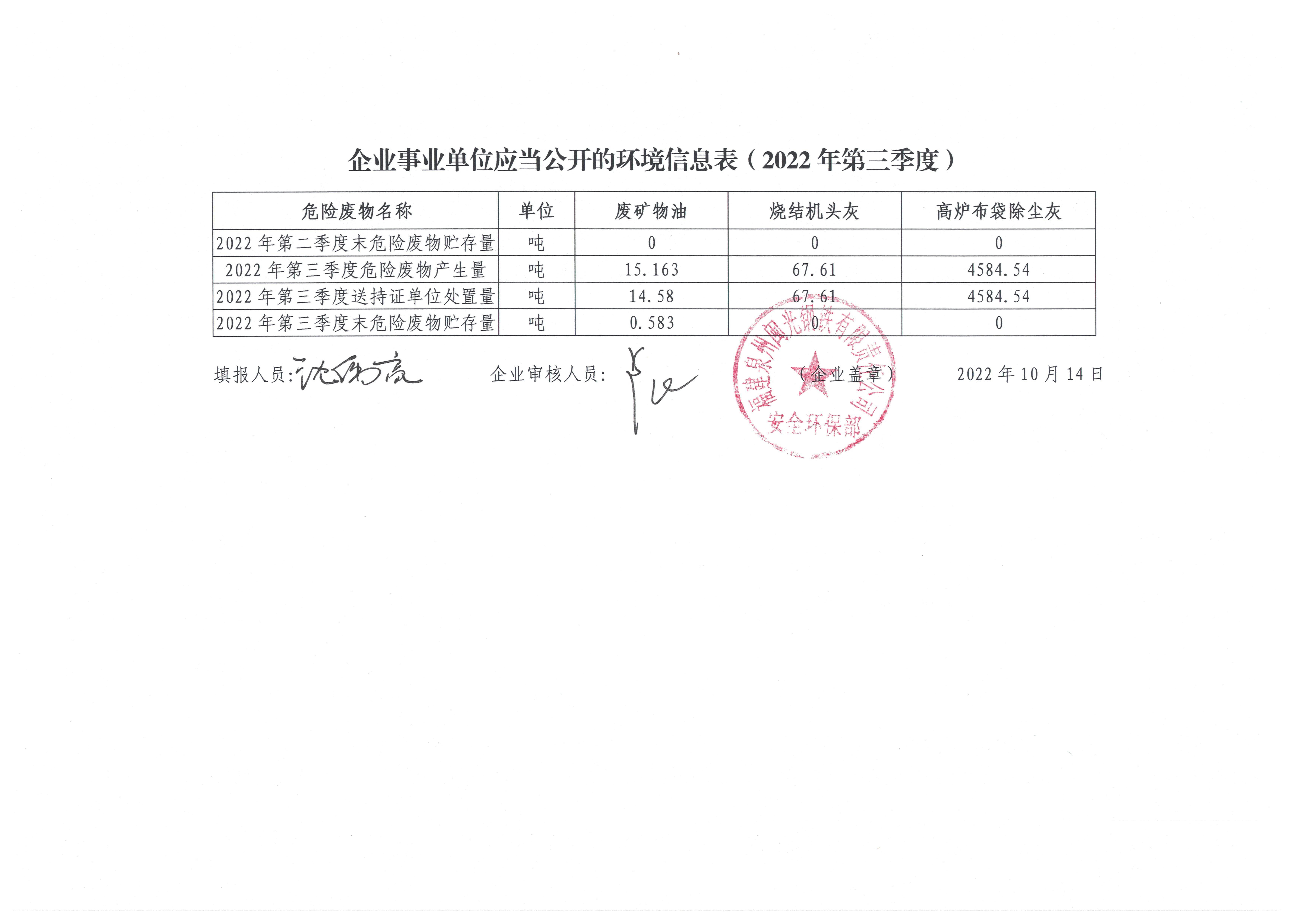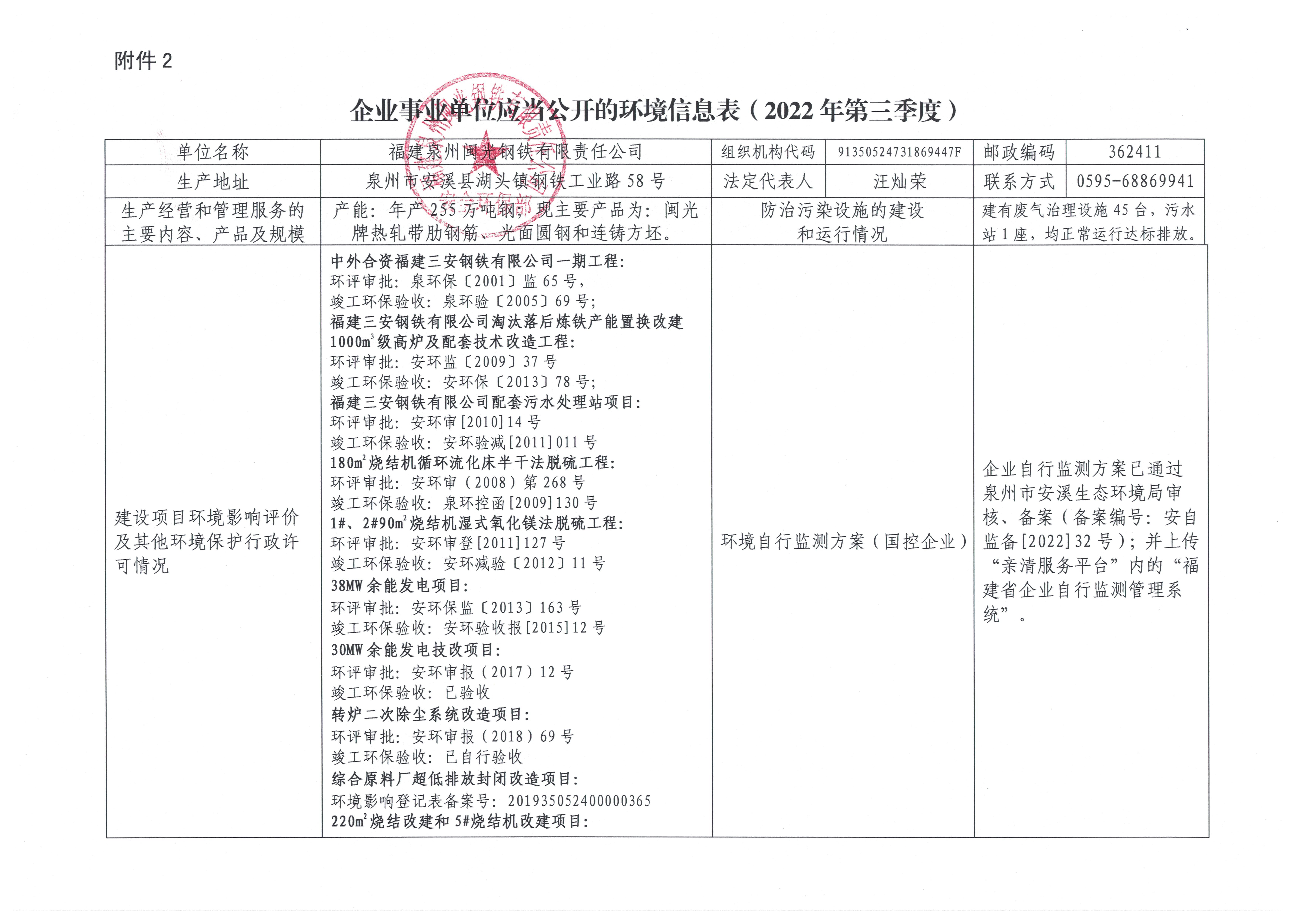 企業(yè)事業(yè)單位應(yīng)當(dāng)公開的環(huán)境信息表(2022年度第三季度)