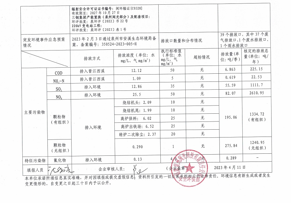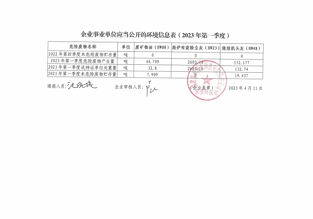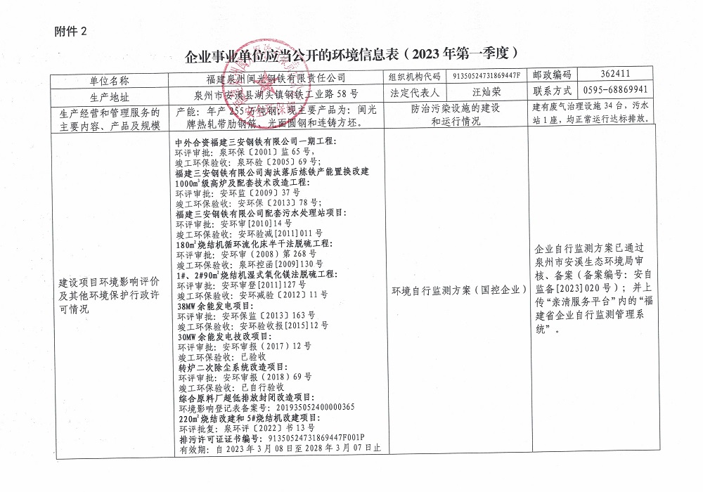 企業(yè)事業(yè)單位應(yīng)當(dāng)公開(kāi)的環(huán)境信息表(2023年度第一季度)