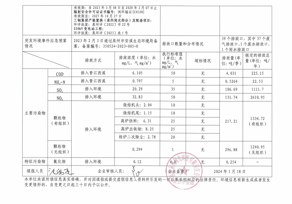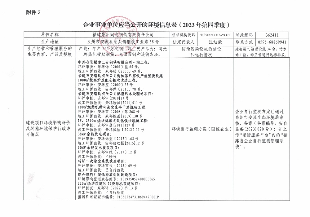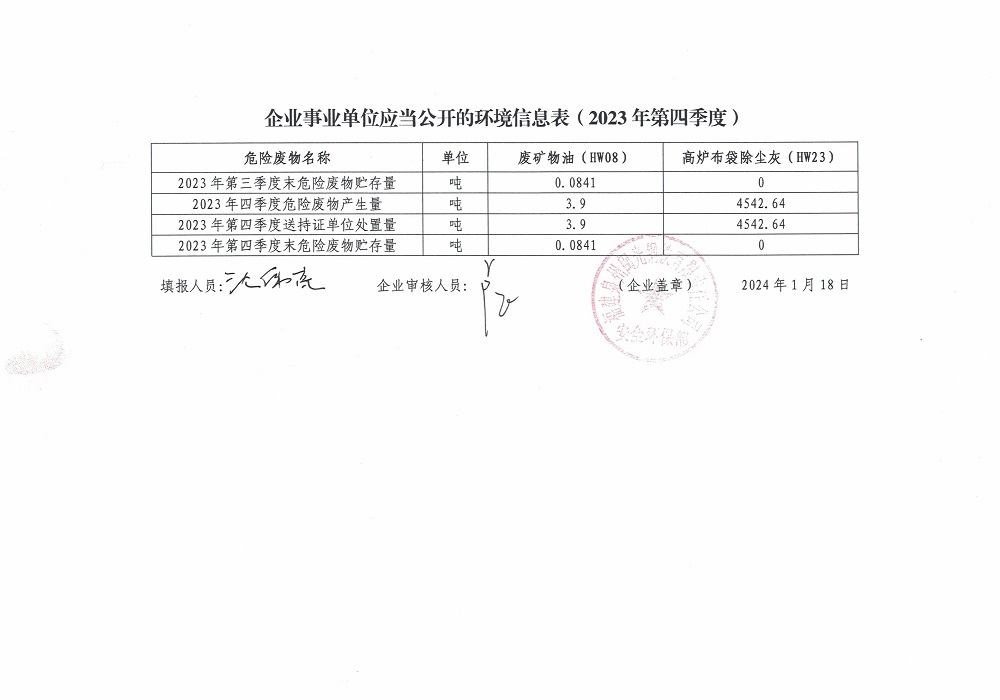 企業(yè)事業(yè)單位應當公開的環(huán)境信息表(2023年度第四季度)