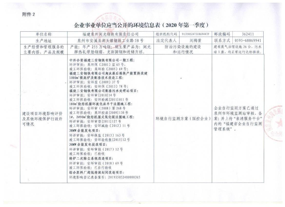 企業(yè)事業(yè)單位應(yīng)當(dāng)公開(kāi)的環(huán)境信息表(2020年度第一季度)