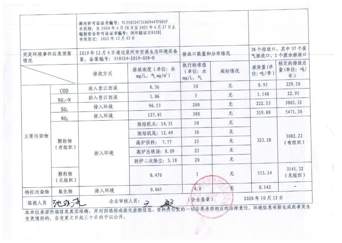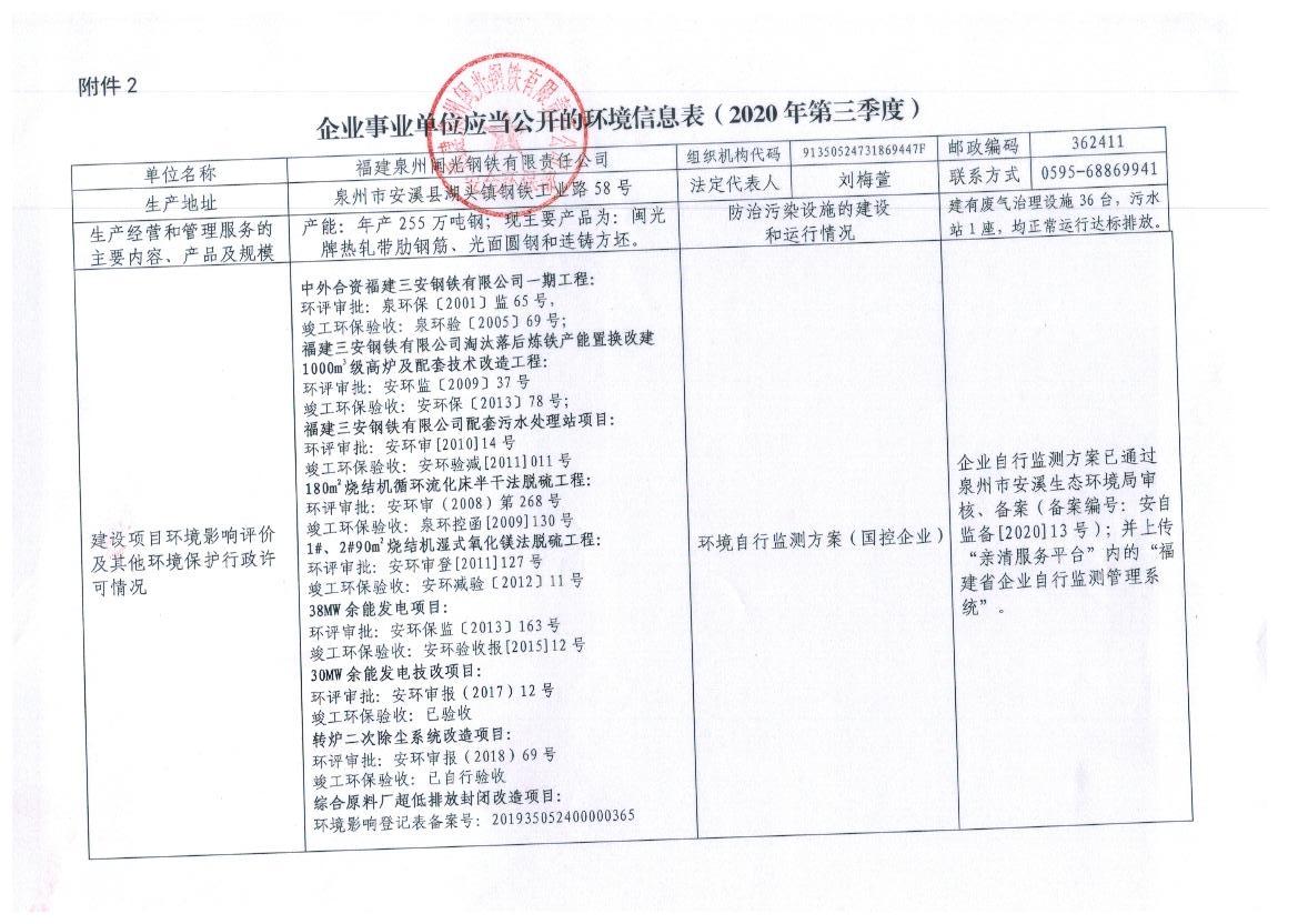 企業(yè)事業(yè)單位應(yīng)當(dāng)公開的環(huán)境信息表(2020年度第三季度)