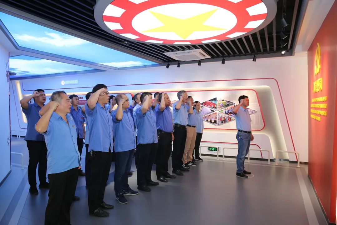 “我志愿加入中國共產(chǎn)黨,擁護(hù)黨的綱領(lǐng),遵守黨的章程……”在泉州閩光黨群活動(dòng)服務(wù)中心里,黨委委員、公司班子成員、各支部書記在公司黨委書記汪燦榮同志的領(lǐng)誓下,面向鮮紅的黨旗,舉起右拳,莊嚴(yán)宣誓。