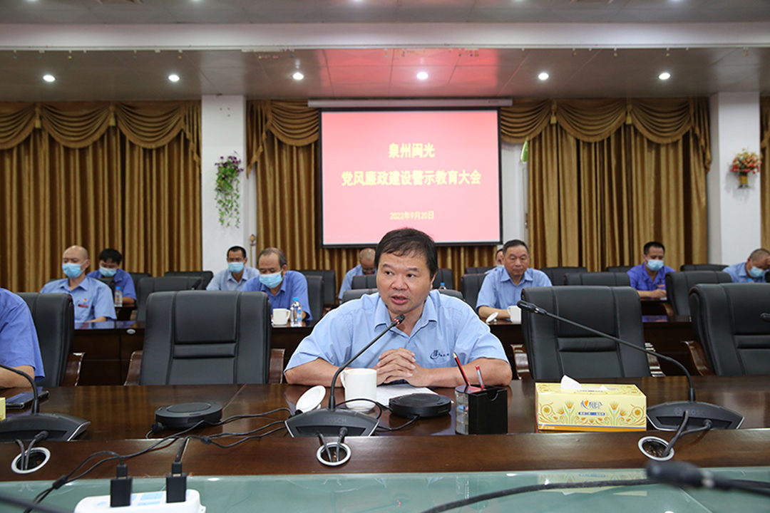 9月20日上午,泉州閩光公司組織召開黨風廉政建設警示教育會,深入貫徹落實中央八項規(guī)定精神,集中學習了《中國共產黨紀律處分條例》和上級紀委“中秋、國慶”期間有關紀律文件精神,安排部署“兩節(jié)”期間黨風廉政建設工作,為全司黨員干部敲響廉政警鐘。
