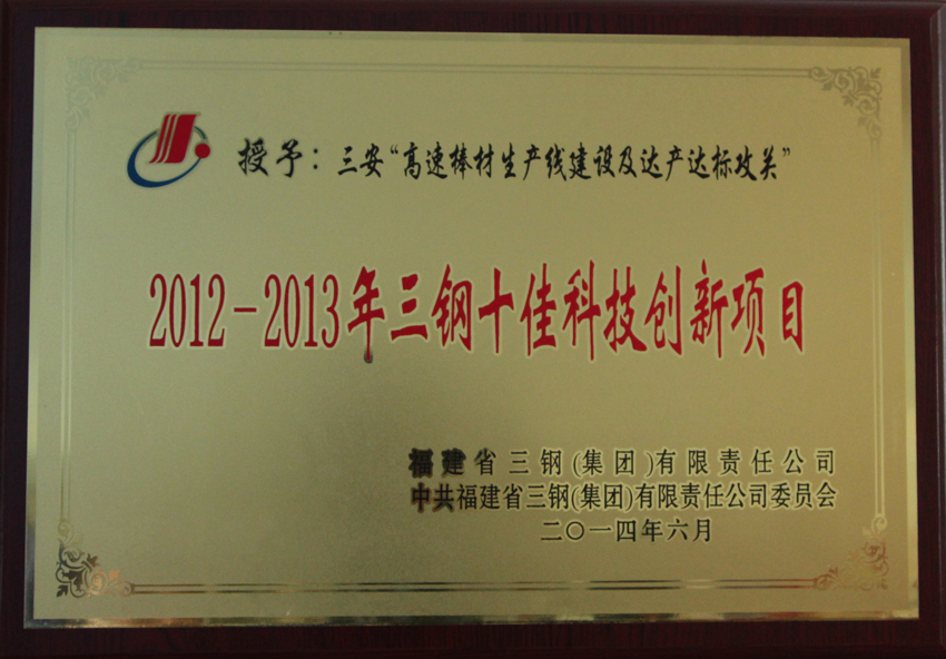 2012-2013年三鋼十佳科技創(chuàng)新項目